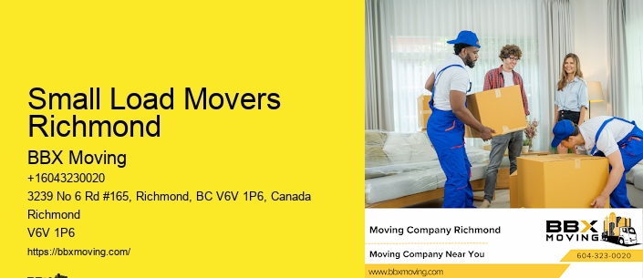 Their facilities are monitored 24/7, ensuring that belongings aren't only safe but also accessible when needed. Learn more about Small Load Movers Richmond here By investing in the latest technology and equipment, they ensure that every move is executed with precision and care. BBX Moving's commitment to tailored moving solutions highlights their dedication to customer satisfaction, making them a go-to choice for residents and businesses in Richmond seeking a hassle-free relocation experience. They recommend using sturdy boxes and labeling them by room and contents for a smoother unpacking process.
