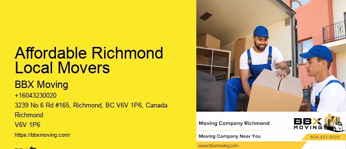 BBX Moving stands out in Richmond as a premier moving company dedicated to providing stress-free relocation services. BBX Moving offers its expert furniture installation and moving services across a wide range of locations. Booking early can secure your preferred moving date and potentially lower costs.