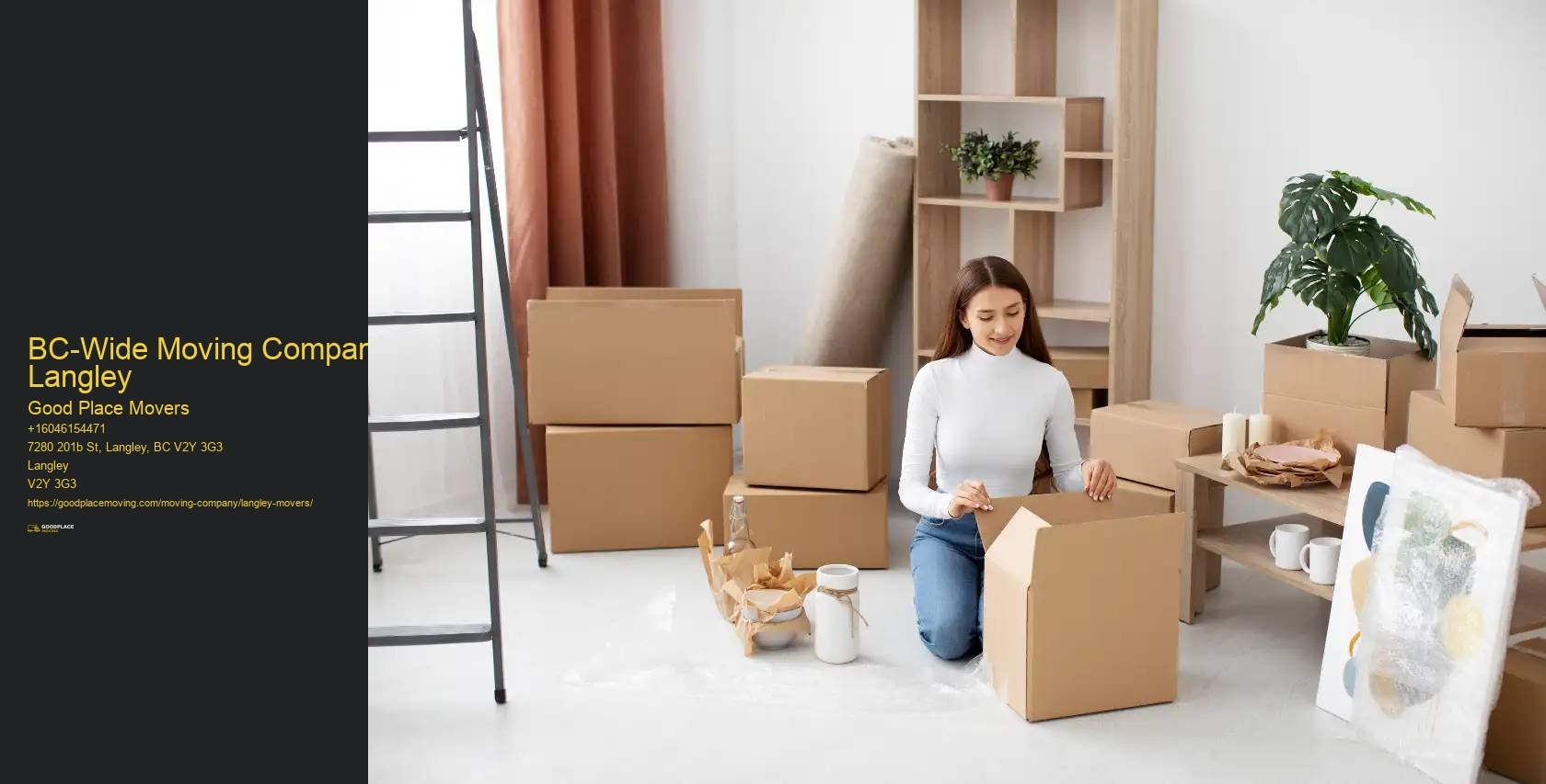 With their reliable and customer-focused approach, it's no wonder they're considered BC-Wide Moving Company Langley's go-to moving company for both local and long-distance moves. Langley commercial relocation specialists This addition was a game changer, setting them apart from competitors and elevating their service quality. Navigating the turbulent waters of moving can be a daunting task, but with Good Place Movers in BC-Wide Moving Company Langley, you've got an experienced captain at the helm.