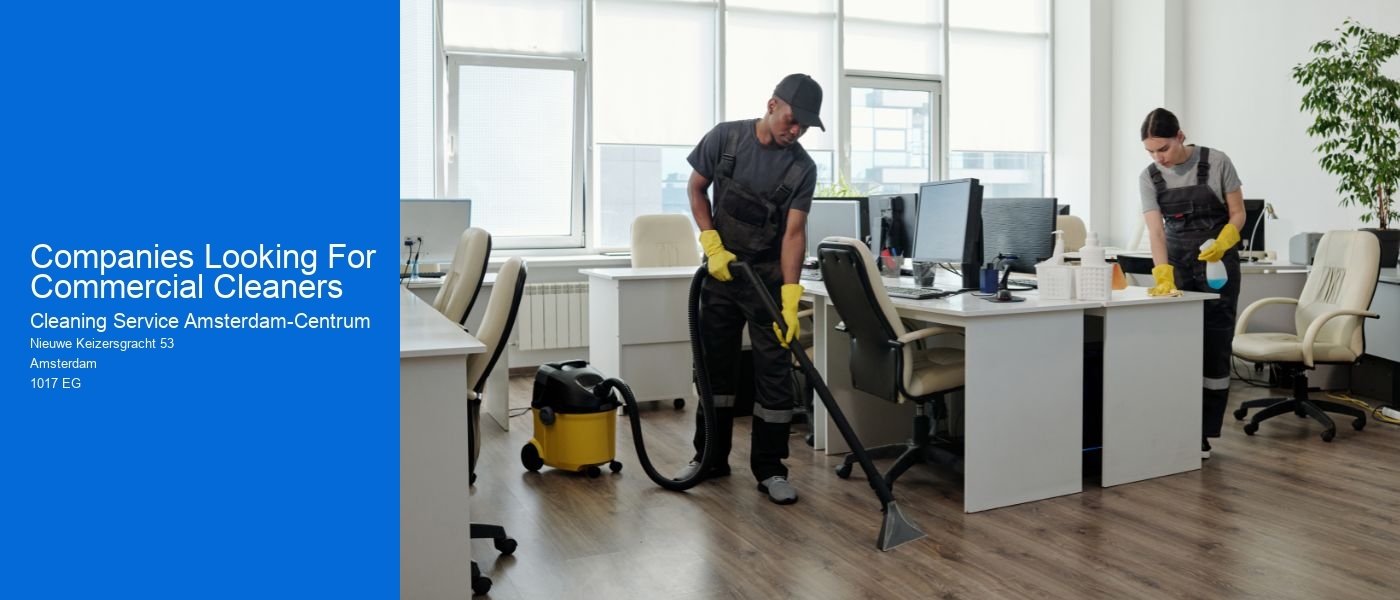 If you are a company looking for commercial cleaners, consider reaching out to Cleaning Service Amsterdam-Centrum for a free consultation and expert advice. They specialize in providing tailored cleaning solutions that meet the unique needs of businesses. Their knowledgeable team is ready to assist you in finding the right cleaning services to enhance your work environment. Don't hesitate to contact them today to explore your options!