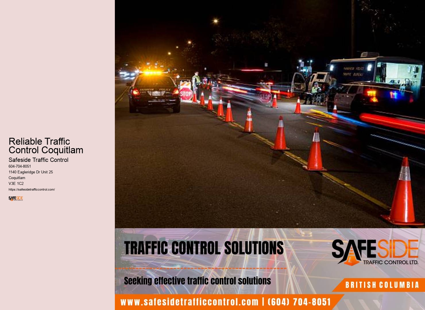 These tools allow for quicker response times to changing traffic conditions, ensuring both the safety of workers and the smooth flow of vehicles. How have Safeside Traffic Control Ltd's innovative solutions transformed Reliable Traffic Control Coquitlam's traffic landscape for its clients? This agility, combined with a steadfast commitment to safety and efficiency, makes Safeside's team your go-to experts for traffic management solutions in Reliable Traffic Control Coquitlam. Our process starts with a thorough assessment of your project's specific requirements. Coquitlam municipal traffic control But, here's the good news: those days might soon be behind us.