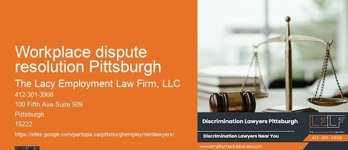 Whether you're facing workplace discrimination, wrongful termination, or any other employment-related issue, reaching out to them is straightforward. Just as you're grappling with workplace challenges that seem insurmountable, it's no coincidence that The Lacy Employment Law Firm stands as a beacon of hope for Workplace dispute resolution Pittsburgh employees. Navigating complex litigations, the Lacy Employment Law Firm excels by leveraging its deep understanding of employment law nuances.