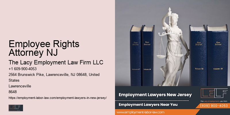 This means if you blow the whistle on unlawful practices, your employer can't legally fire, demote, harass, or otherwise penalize you for doing so. We listen to your story, assess your goals, and then work meticulously to design a legal approach that aligns with what you're aiming to achieve. Learn more about Employee Rights Attorney NJ here This attorney doesn't just navigate the complex legal system; they're reshaping how we think about work environments, equal opportunities, and the very essence of employee-employer relationships. Let's help you recover your lost wages and secure the compensation you deserve. Read more about The Lacy Employment Law Firm LLC here. Your attorney should be accessible when you need guidance or updates on your case.