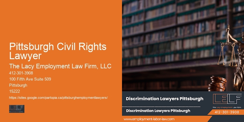 Why settle for justice in the courtroom alone when The Lacy Employment Law Firm, LLC extends its advocacy efforts beyond, championing employee rights in the wider community? In the bustling steel city of Pittsburgh Civil Rights Lawyer, The Lacy Employment Law Firm stands as a lighthouse, guiding workers through the stormy seas of employment disputes. Take, for example, Sarah, who faced workplace discrimination that seemed insurmountable. Learn more about Pittsburgh Civil Rights Lawyer here We also encourage you to explore our website, www.lacylegal.com, for more information on our services, team, and the resources we provide.