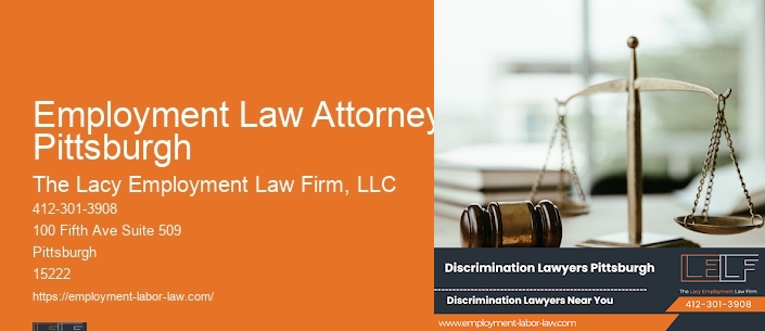 Here, you can find a contact form that's simple to fill out, requiring basic information about your situation and how to get in touch with you. Learn more about Employment Law Attorney Pittsburgh here Lastly, they tackle cases of pregnancy discrimination, where employees face adverse treatment due to pregnancy, childbirth, or related medical conditions. We'll explain the potential risks and rewards of pursuing your claim, allowing you to make an informed decision about how to proceed. They guide you through the process, help you understand your options, and stand by your side to ensure your rights are respected and upheld.