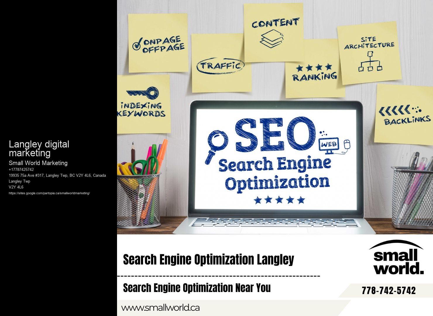 To ensure their SEO strategies stay effective, Small World Marketing constantly updates their approaches, leveraging the latest digital trends and algorithm changes. They're dedicated to keeping you ahead in Langley's competitive digital landscape.